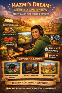 My name is Hazmi, and I have a dream — to become a game developer and build meaningful games that inspire, educate, and bring people together.