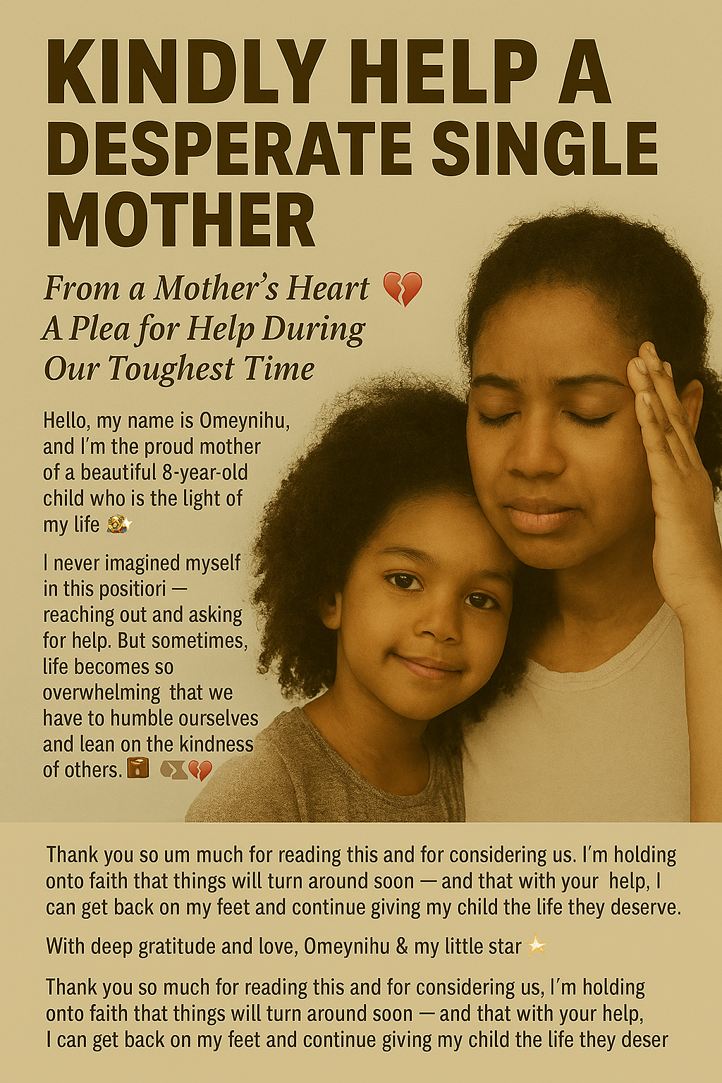 From a Motherโs Heart ๐ A Plea for Help During Our Toughest Time